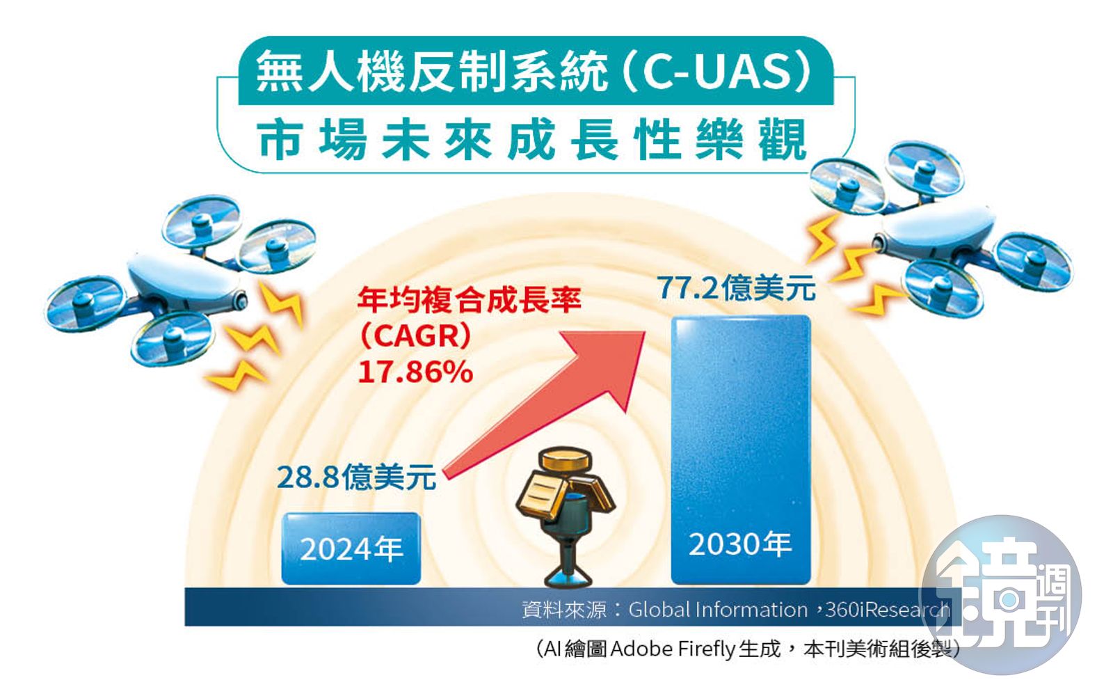 「無人機反制系統的重要性並不亞於攻擊或偵蒐無人機,檯面上有能力做無人機整機或通訊零件的國內廠商非常多,但無人機反制系統比無人機難做好幾倍、甚至數十倍。換句話說,並不是誰都可以做!」朱順一詳盡地分析並進一步表示,相較於過去合勤所開發的軍工相關通訊產品,無人機反制系統賣到海外的機會更大。