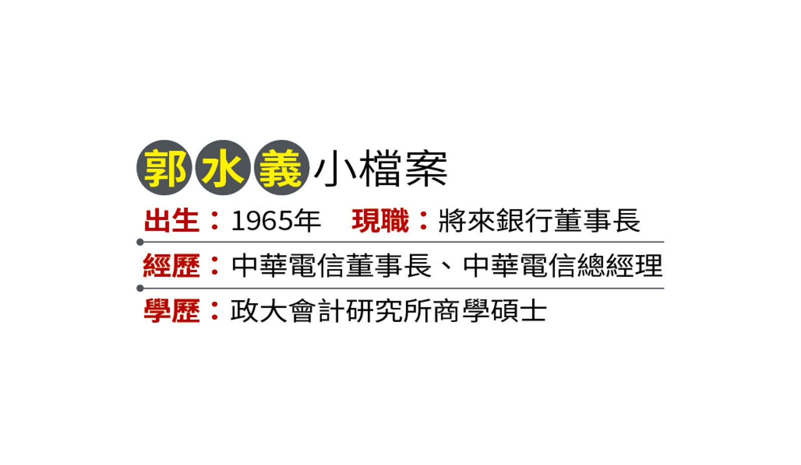 面對國內三家純網銀成立近5年以來,全處於虧損狀態,各界都好奇曾經帶領中華電信寫下營收獲利新高的郭水義,究竟要如何率領擁有中華電信、兆豐銀行2大股東,被外界視為網銀國家隊的將來銀殺出重圍?
