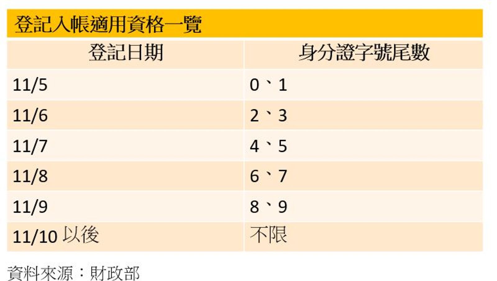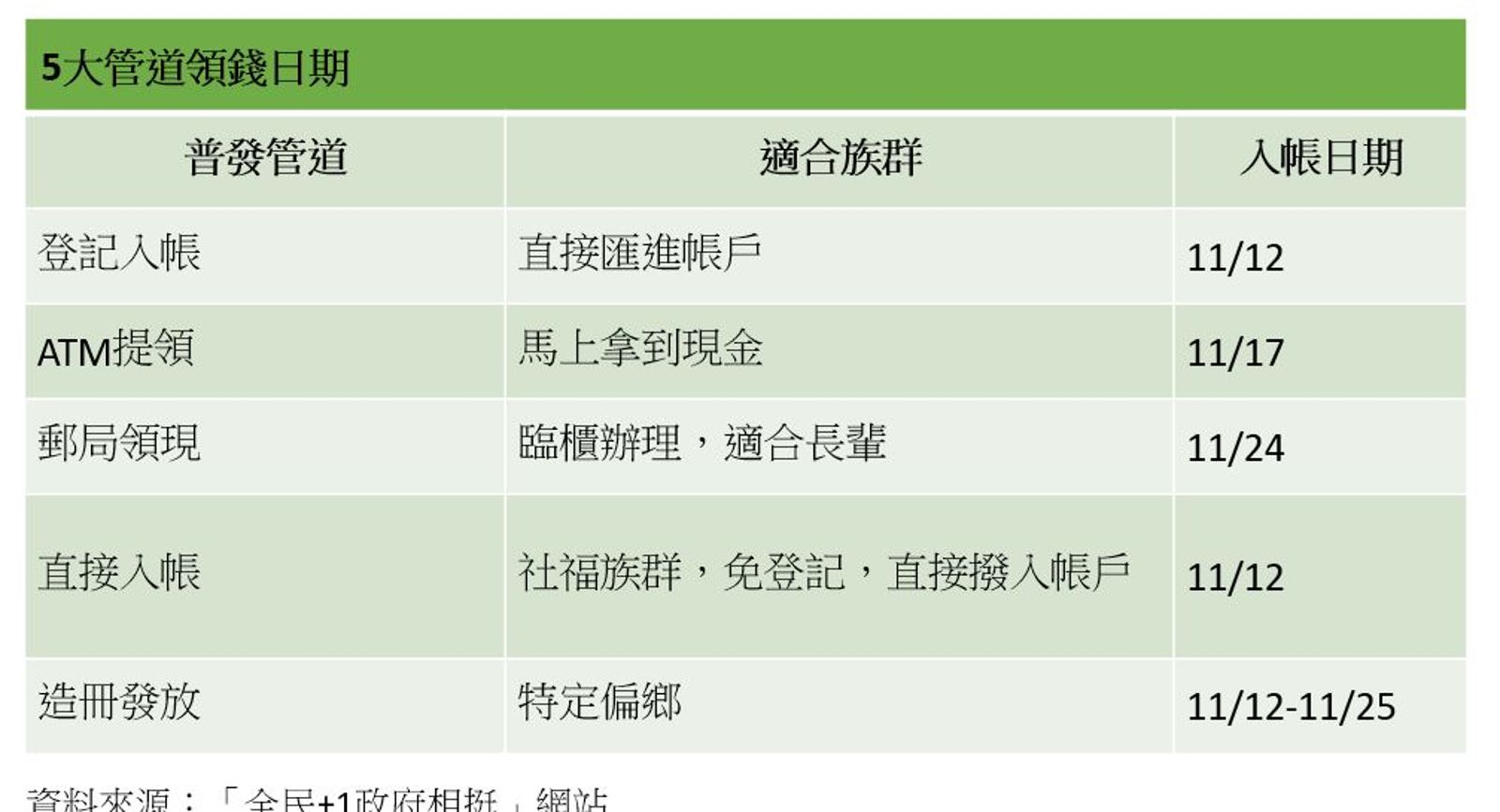 正領取政府補貼如勞保年金、國民年金、老農津貼、身障補助等民眾,已列入「直接入帳」的名冊中,免登記,政府會在11/12直接撥入領取補貼的現有帳戶。
